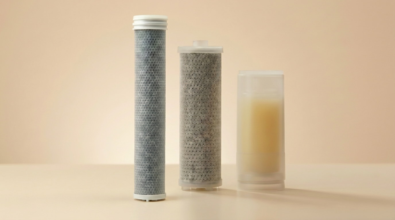 Beide Filter reinigen dein Duschwasser mit Aktivkohle. Der kürzere Filter lässt Platz für eine zusätzliche Aromaduft-Kartusche.